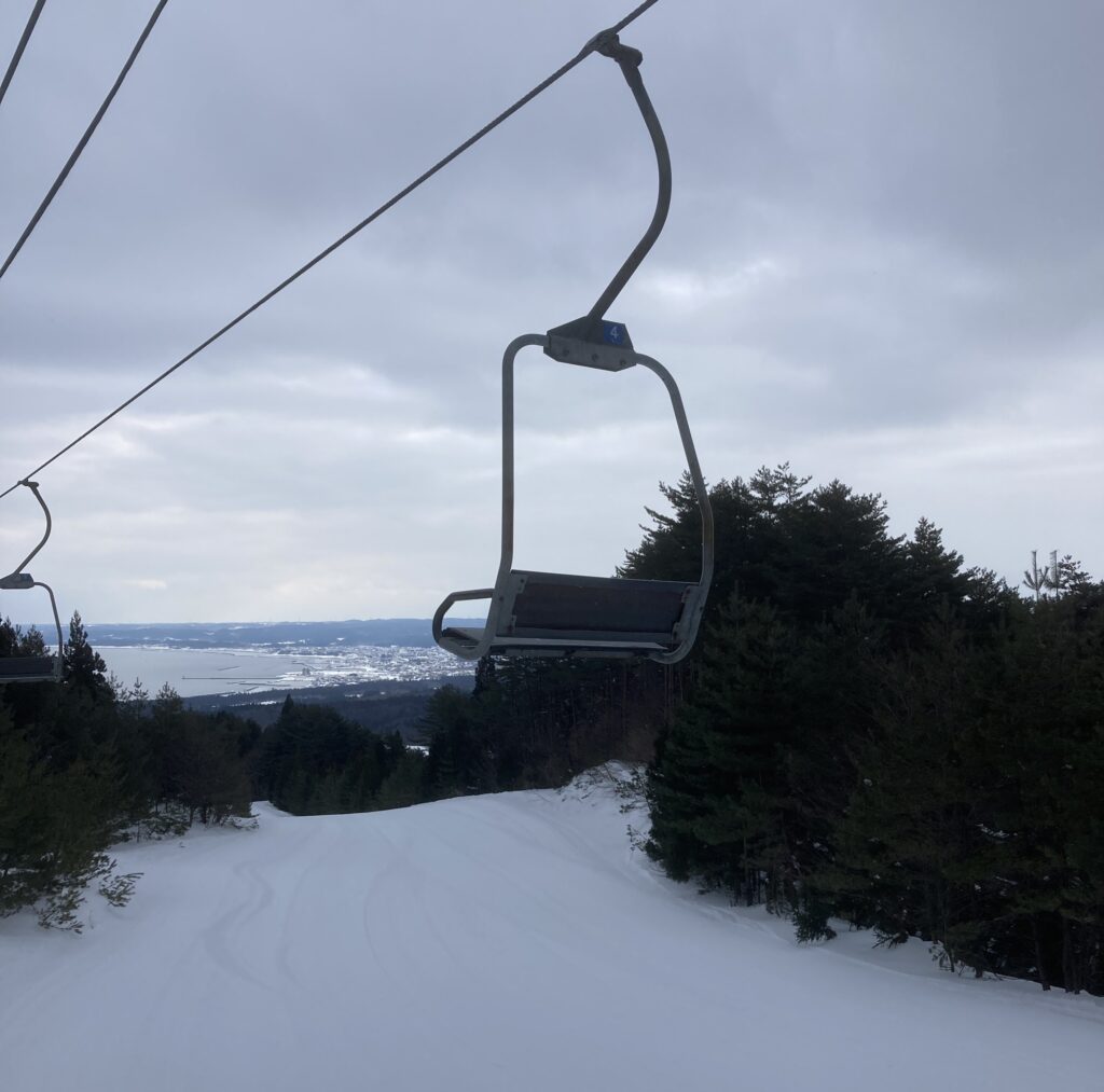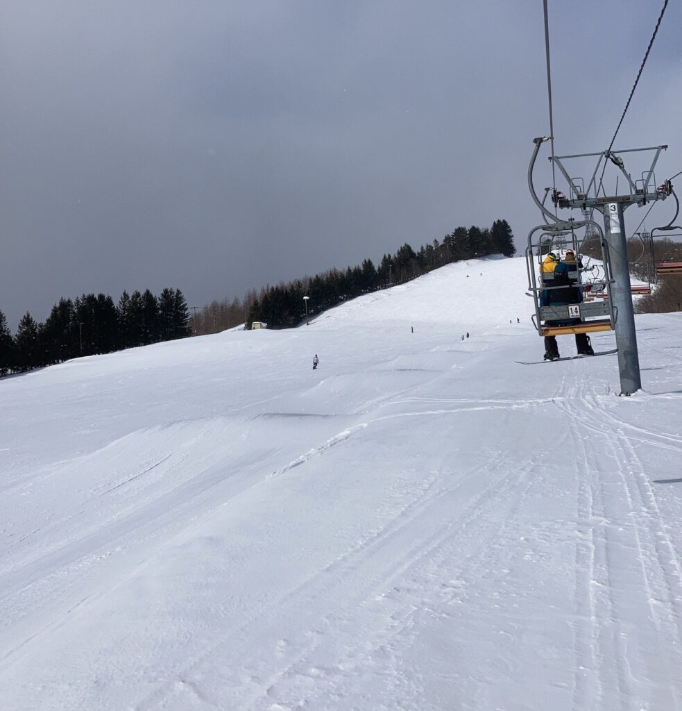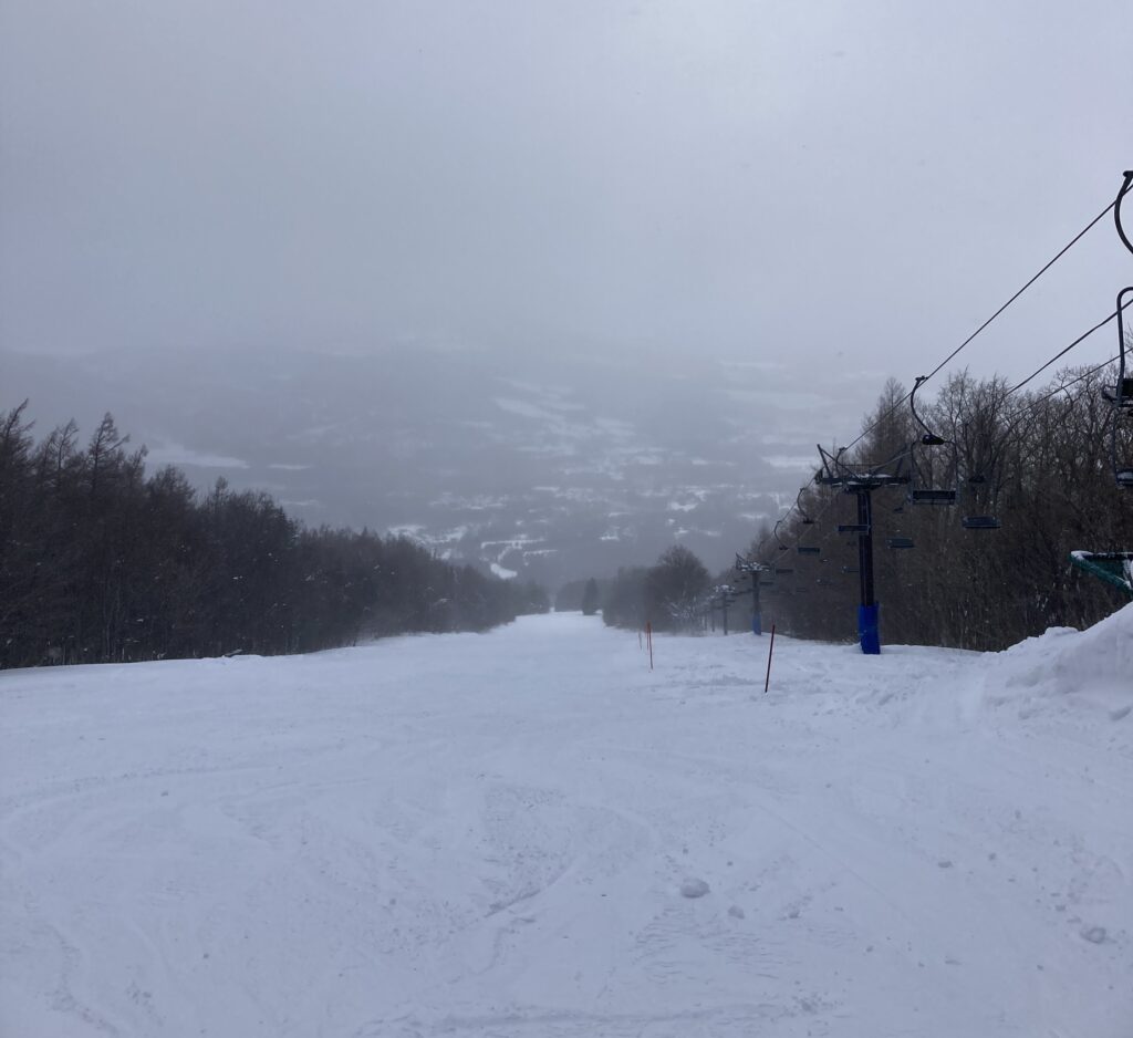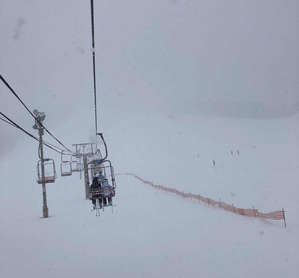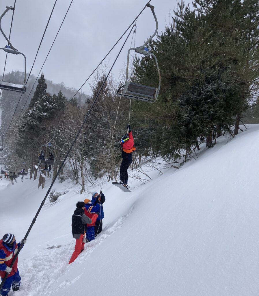 この日はちょっとした事件がありました。途中から吹雪いてきて、リフトが止まってしまい、リフトからレスキューしてもらいました。