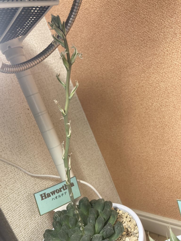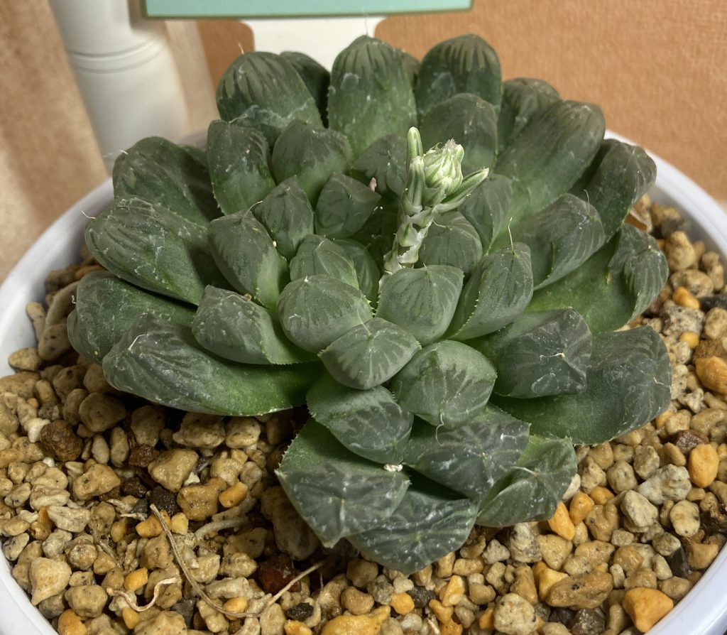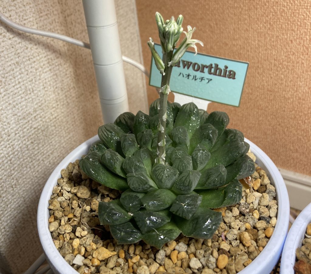 ノーマル(?)ハオルチア 2025.04.292025.05.20 購入時のタグにハオルチアしか書いてないので詳細不明。 2024/7/20 2025/4/20 花が咲きそうです。心なしか、花芽が太い気がします。 2025/4/30 咲きそうです。 2025/5/18 無事、開花しました。