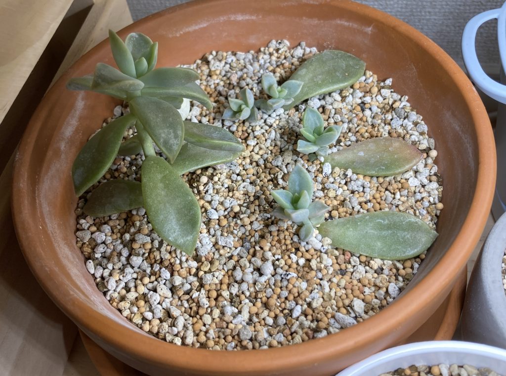 2025/4/20 同じ鉢で葉挿ししたらうまくいったので、植え替えです。気に入って品種なので、うまく増えてほしいです。