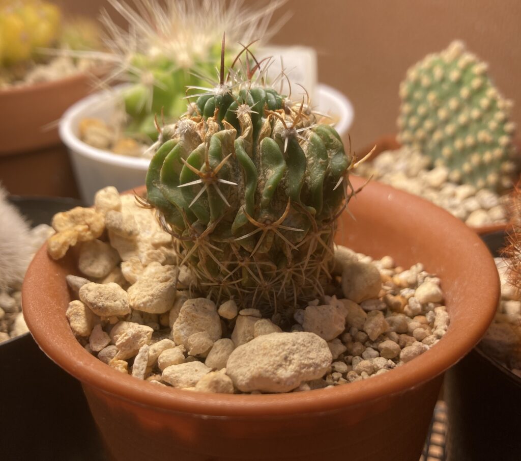 2024/11/9 気づいたら、だいぶ凹んでいました。はじめての品種なので水少なめに育てていましたが、結構水を好むかもしれない。
