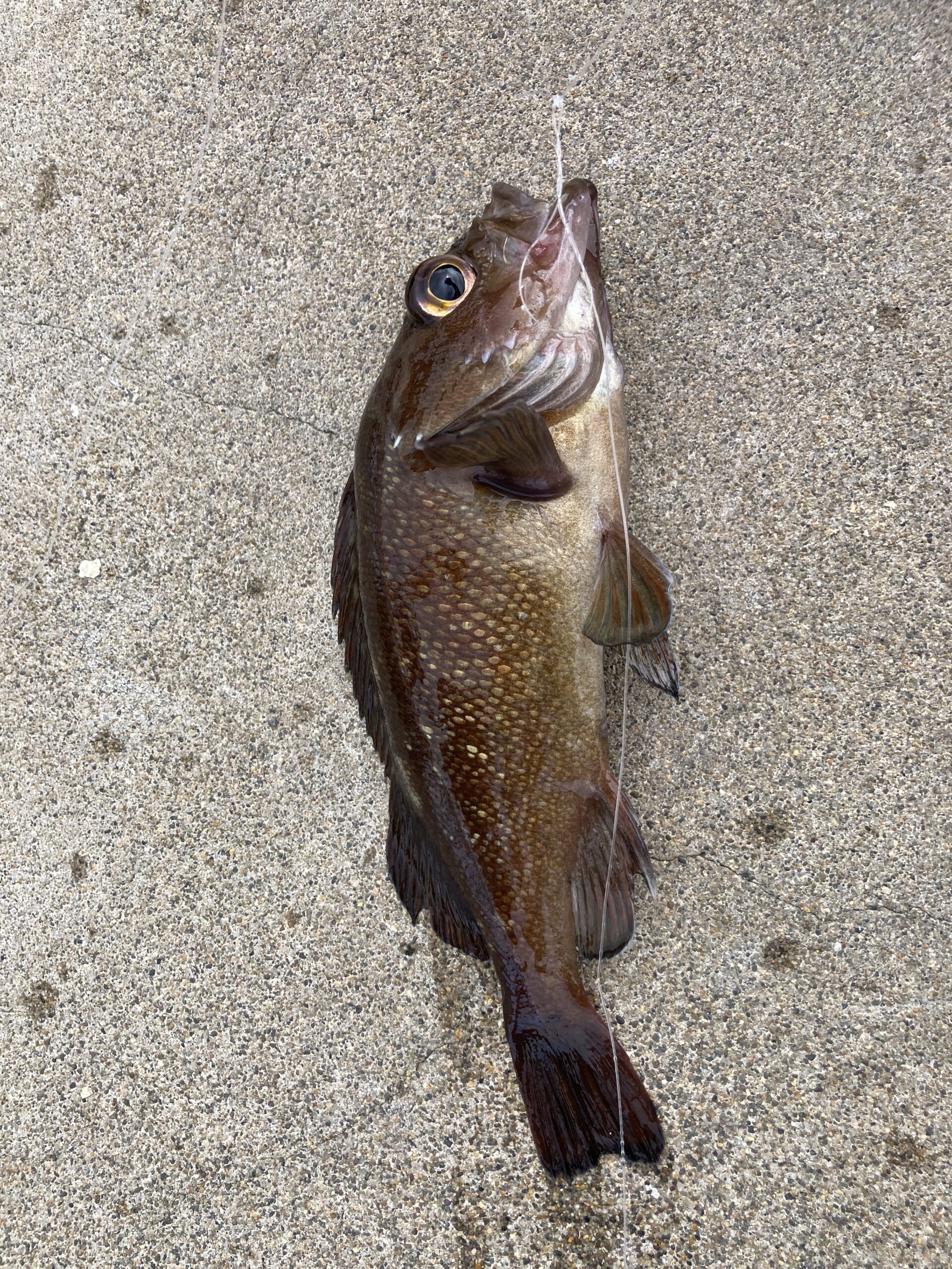 テトラの端で、ブラクリで探ったところヒット!初めての大きな当たりで焦りながらも、何とか吊り上げました。20 cmくらいのメバルです。当たった瞬間に上手く合わせられたのがよかったのかも。