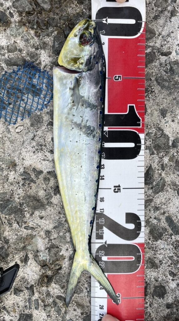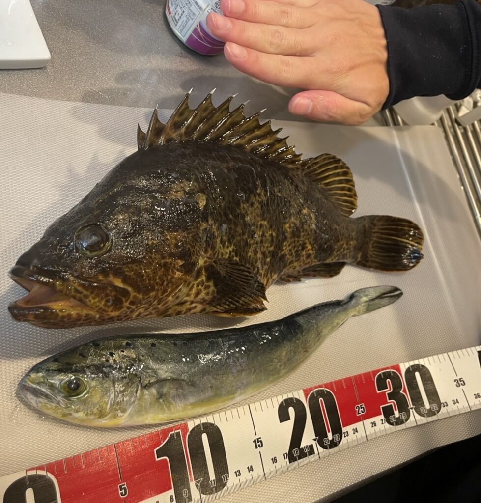 35cmのベッコウゾイとシイラが上がりました。ベッコウゾイは棚の設定を間違えて、底ギリギリに鯖の切り身を入れたところ、釣れました。最初は藻かと思いましたが、水面近くまで上げてきてようやく魚だと判明。このサイズはこれまでで最大です。