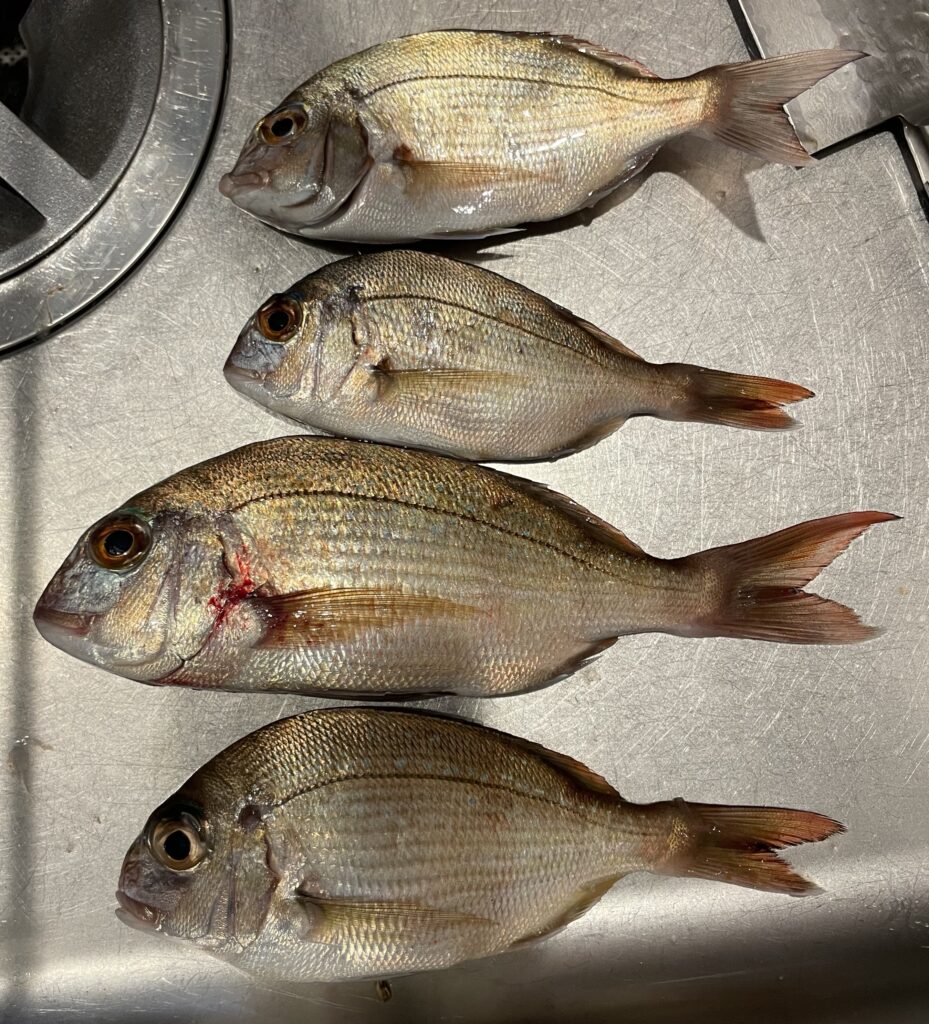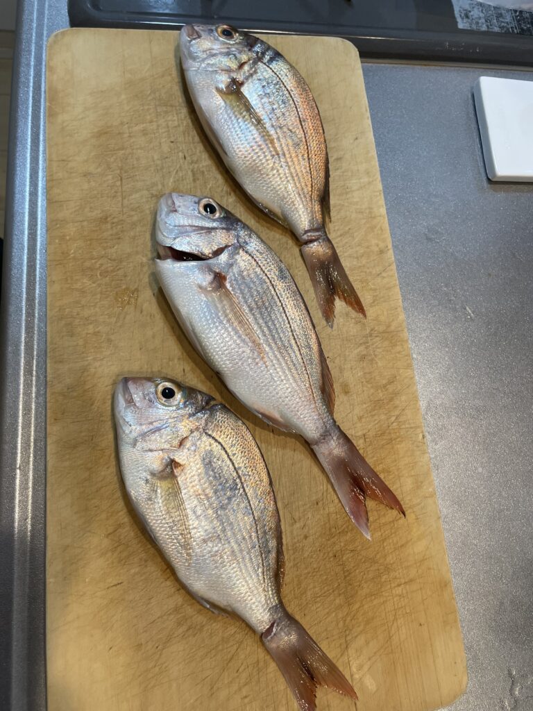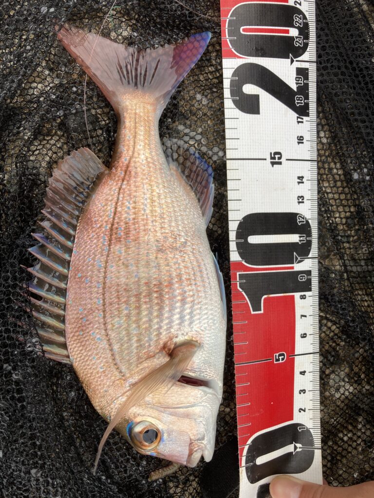 イソメパワーで、真鯛3匹釣りあげました。サイズは20cm×2匹と10cm×1匹で小ぶりでしたが….ただ初めての真鯛で、テンションMAXです!